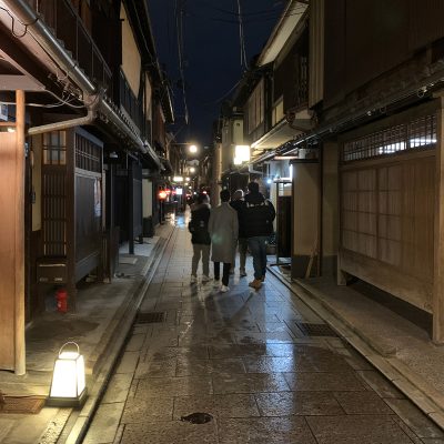 夜の町並みを散歩。まさに京都を感じる町家が風情あるね。