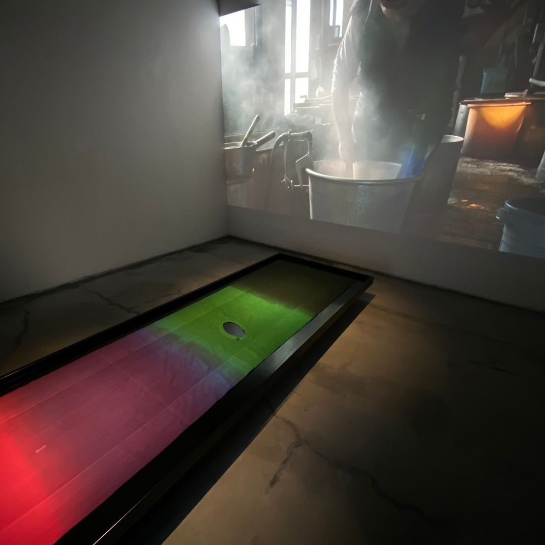 世界的デザイナーのイッセイミヤケさんのお店で美しいグラデーションの布とそれを作っている工程を動画で鑑賞。すごい手間がかかっているんだね。