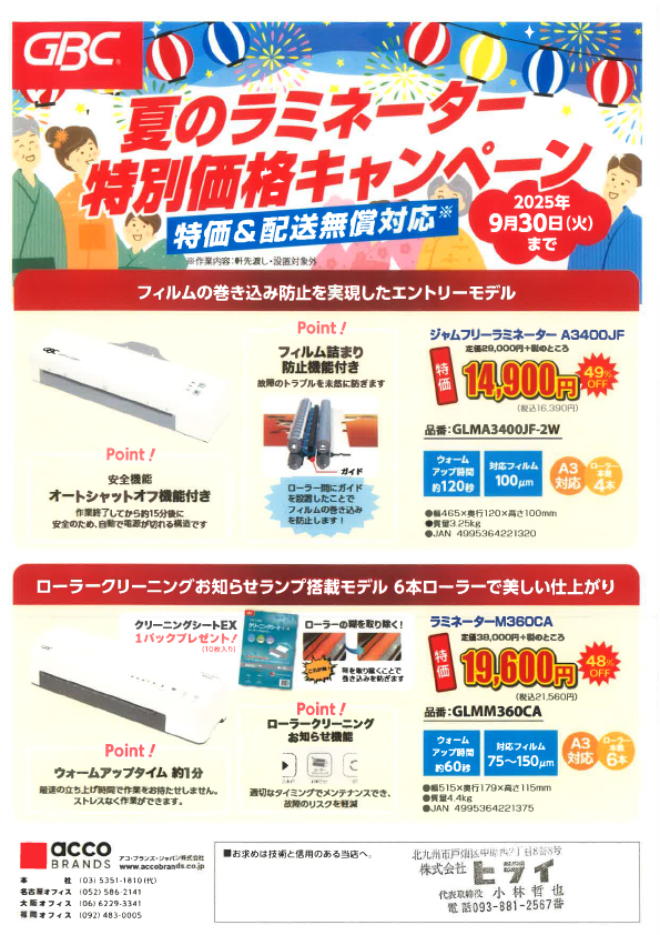 今日は夏の特価品のお知らせだよ。アコ・ブランズ・ジャパンさんが扱っている商品だね。