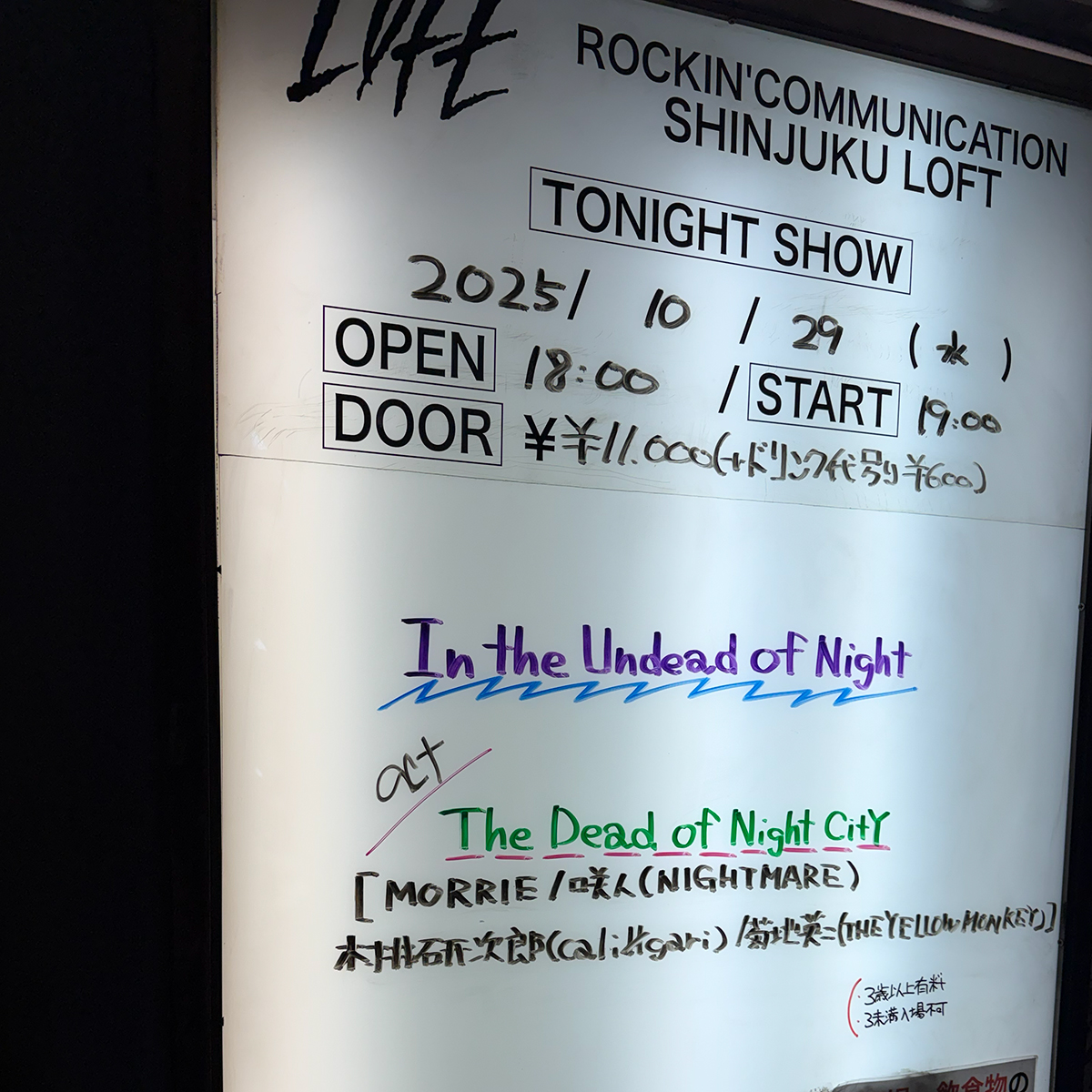 いよいよ開演。メンバーは以下の通り。演目は全てDEAD ENDです。Morrieがデッドエンドだけの曲をやるのはもうあまりないから貴重なLIVEだね。