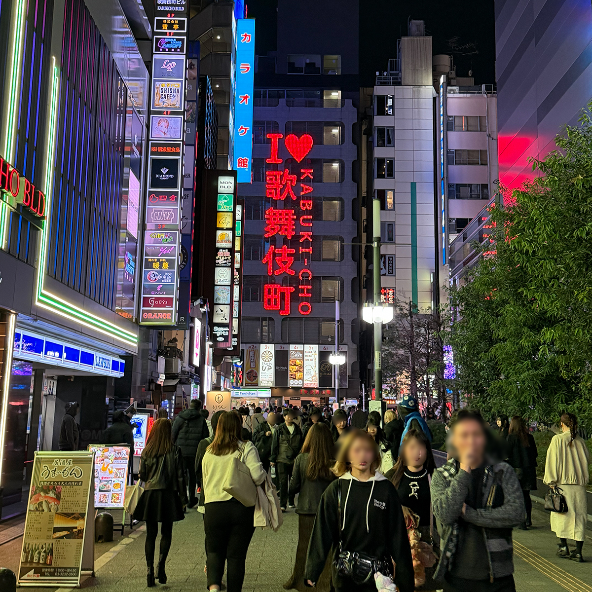 I Love 歌舞伎町を眺めながら宿舎へ向かいます。