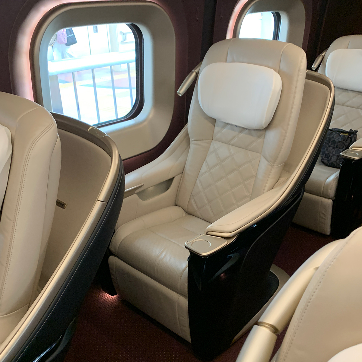 この新幹線の12号車のグランクラスという車両に乗るよ。