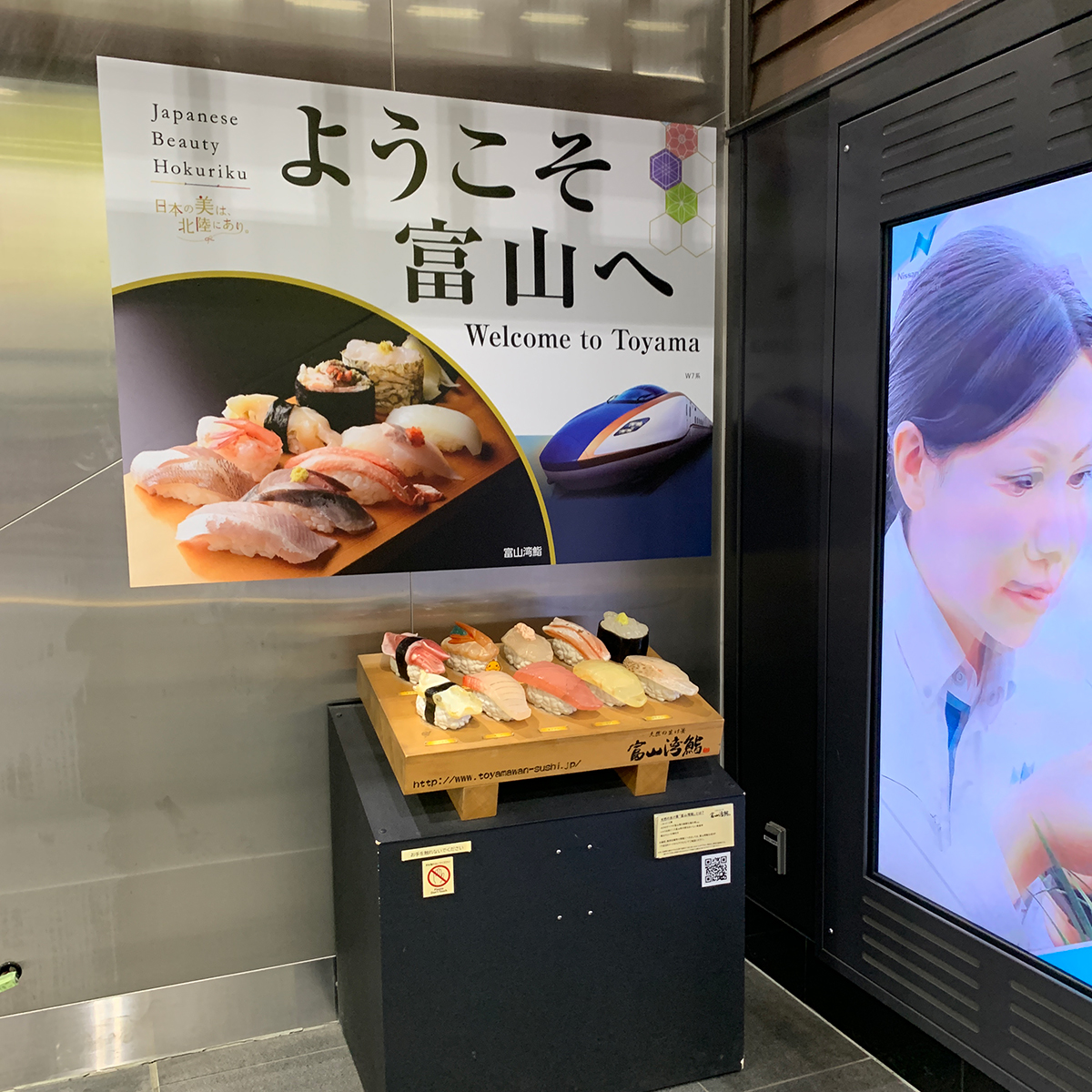 ホームからの階段降りたらもうこれ↓ 富山県=寿司