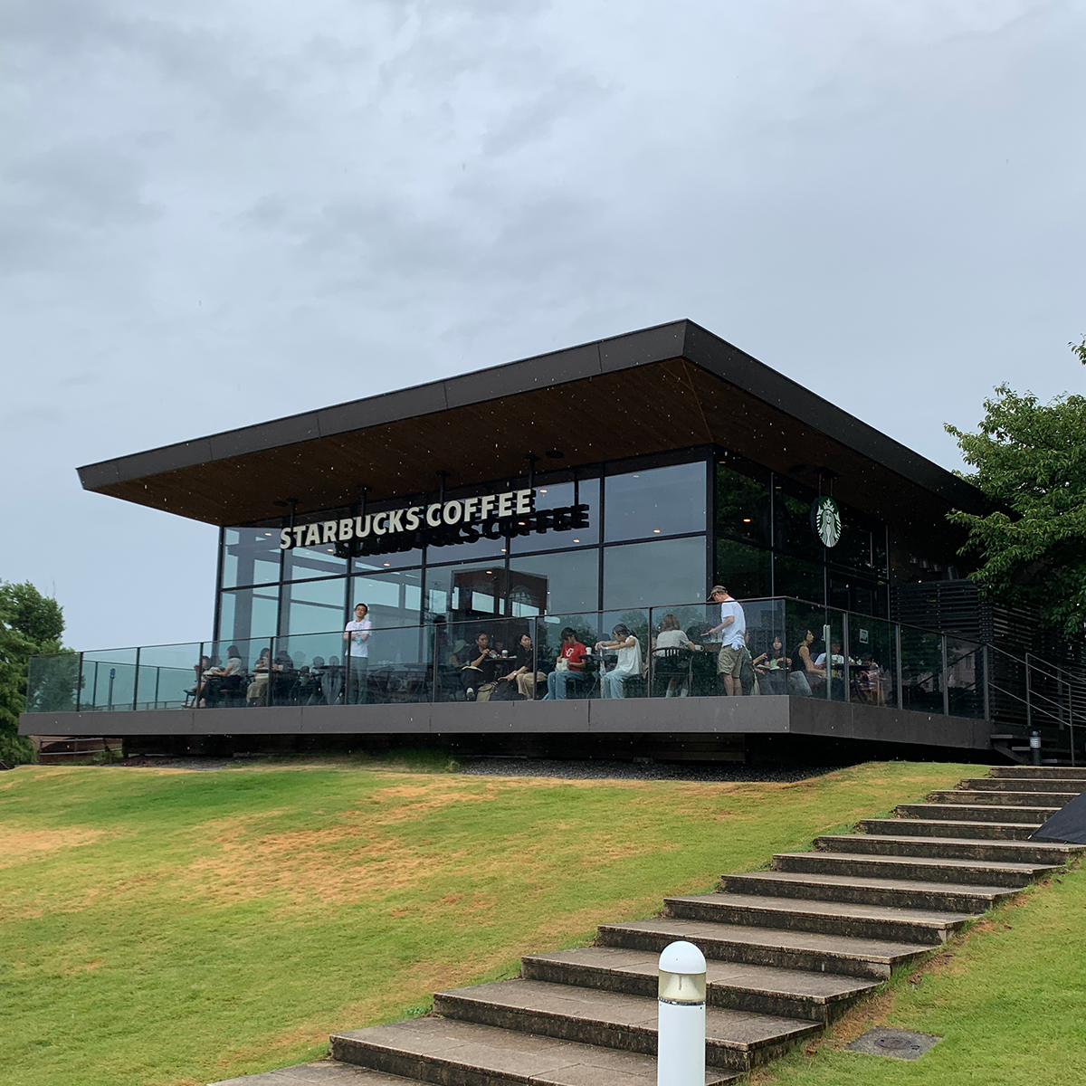 この公園には世界一美しいスターバックスと呼ばれるお店があるんだよ。↓