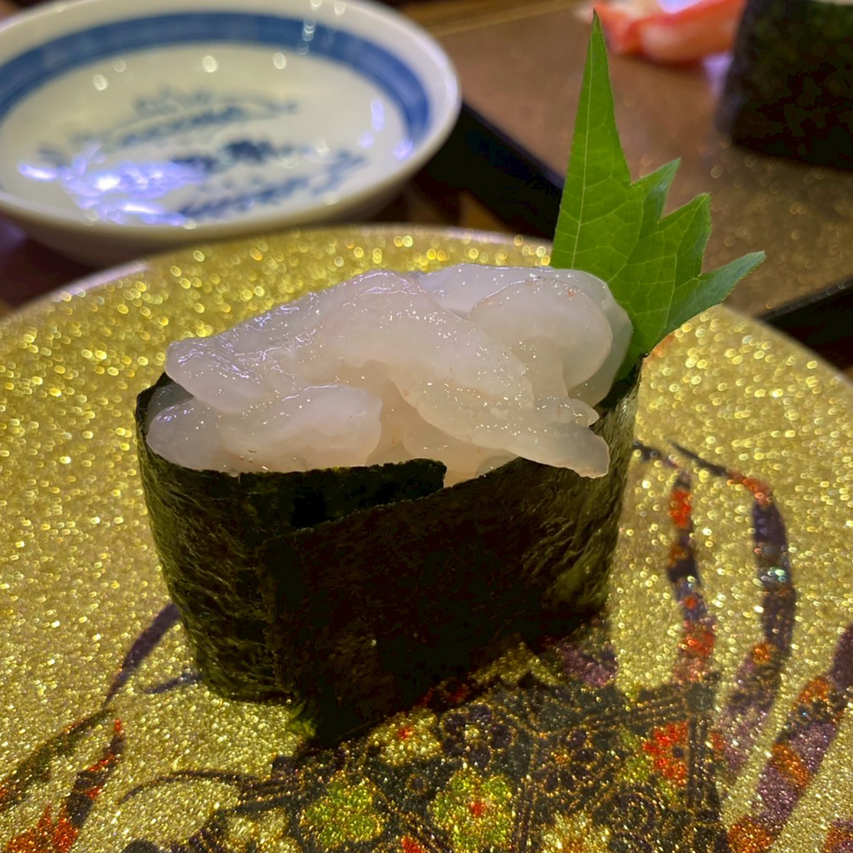 ↓珍しい白エビの軍艦。とってもトロッとしてて美味しい。
